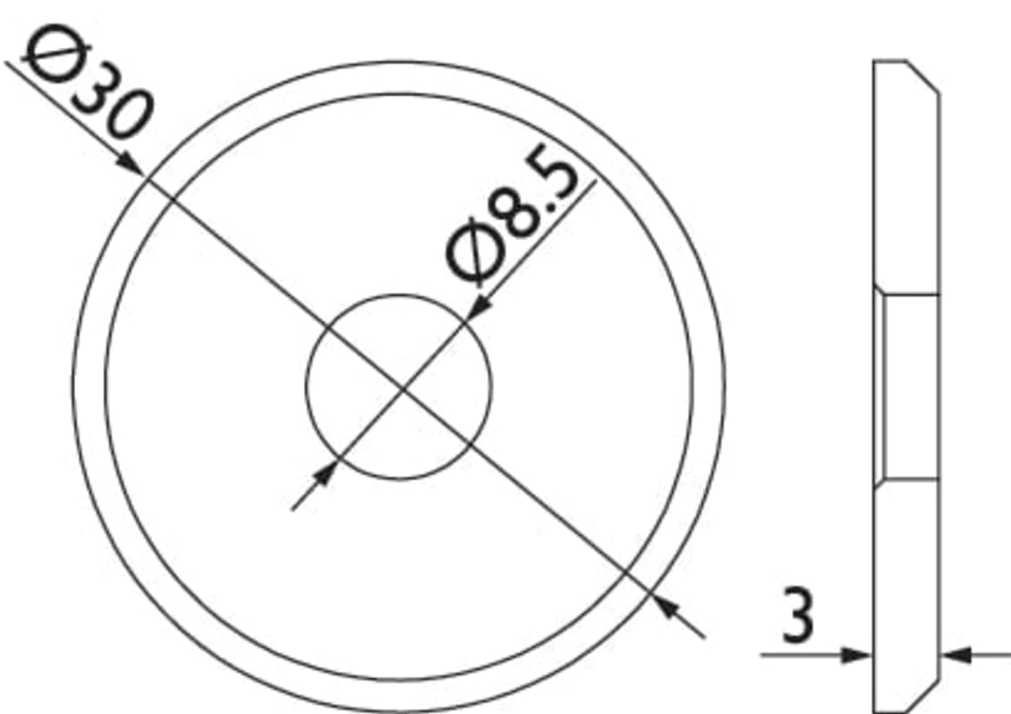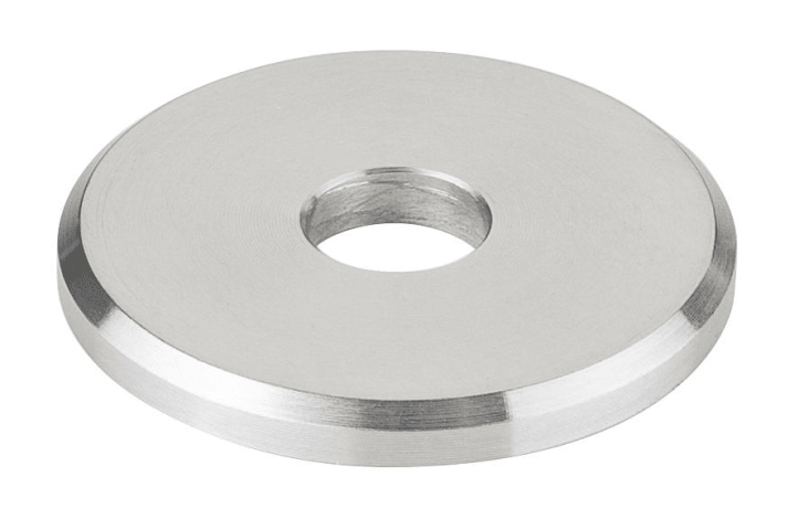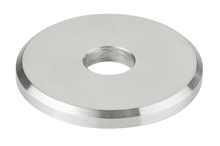 4x Edelstahl-Unterlegscheibe für Stoßgriffe, für Stützen 20 mm, 30 mm Außendurchmesser, 3 mm hoch, Lochung 7,5 mm, inkl. Kunststoff-U-Scheibe 2 mm transparent, Oberfl. 60 (Edelstahl matt)