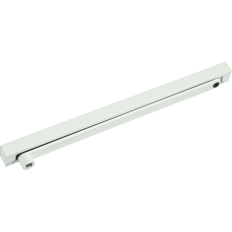 Dorma Gleitschiene G-N, im Contur-Design, Normalausführung. Die Gleitschiene umfasst Hebel, Gleitschiene, Gleitstück, Befestigungsstücke, Schrauben und Endkappen. Die Gleitschiene ist sowohl für DIN-L