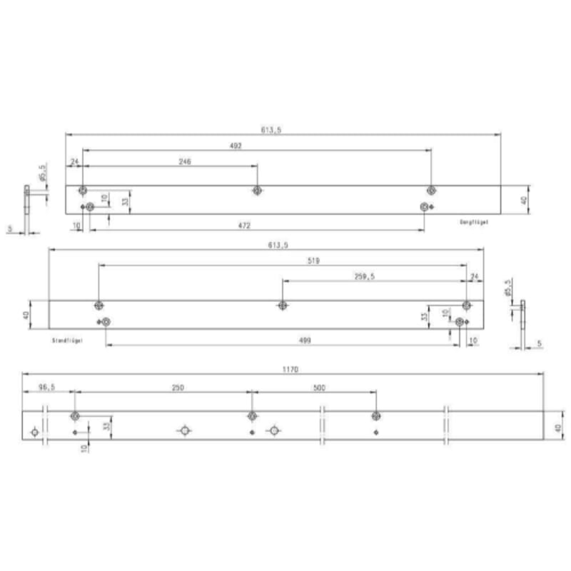 Zur Anbringung für Gleitschienen an Türrahmen, bei denen keine direkte Montage möglich ist.