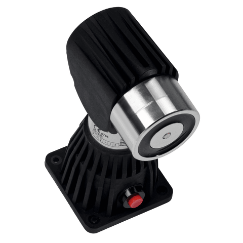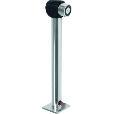 Elektromagnet 24 V DC mit Verpolschutz für Boden-, Decken- und Wandmontage, mit Unterbrecherdrucktaster. Gehäuse Kunststoff, Magnet Stahl verzinkt. Haltekraft 490 N. Allgemein bauaufsichtlich zugelass