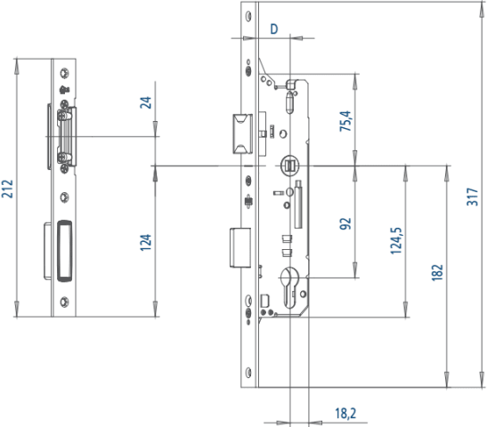 FUHR Einsteckschloss 803,PZ92/8,D45,F16x292ktg,Si