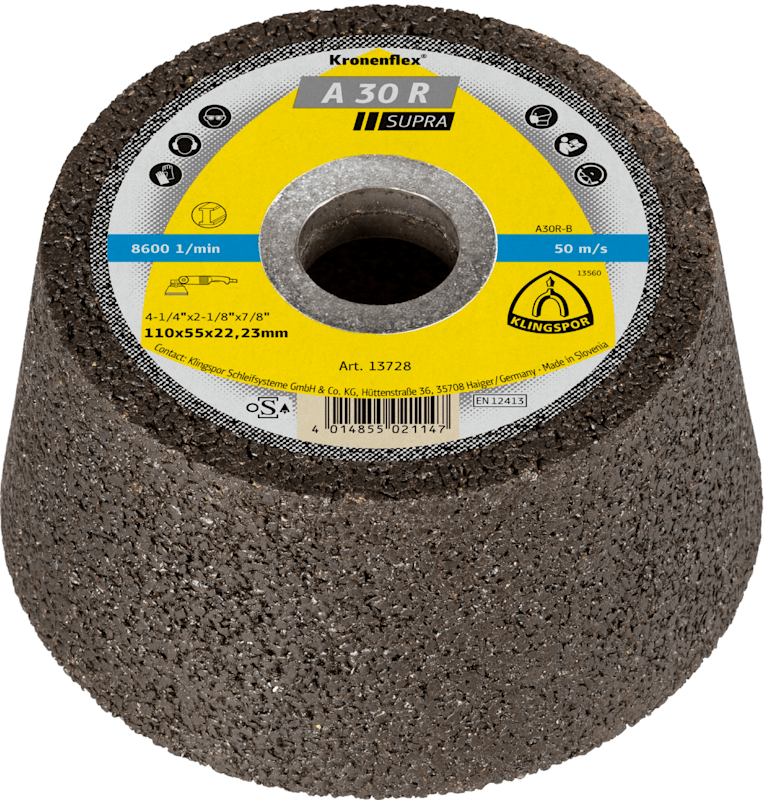 Klingspor A 30 R Schleiftopf, 110 x 55 x 22,23 mm gekröpft