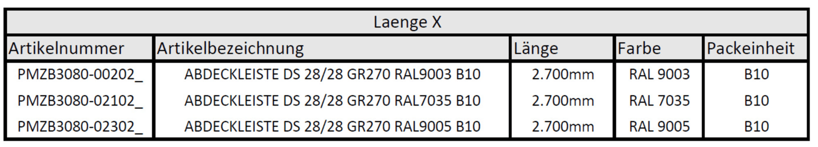 ABDECKLEISTE DS 28/28 GR270 RAL9003 B10 PMZB3080-002020