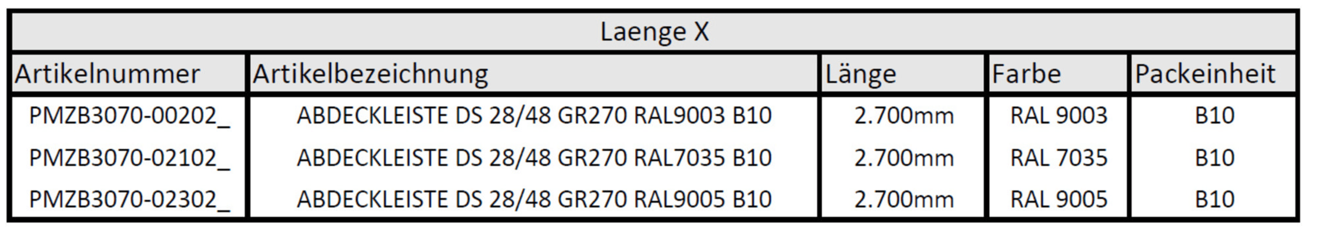 ABDECKLEISTE DS 28/48 GR270 RAL9003 B10 PMZB3070-002020