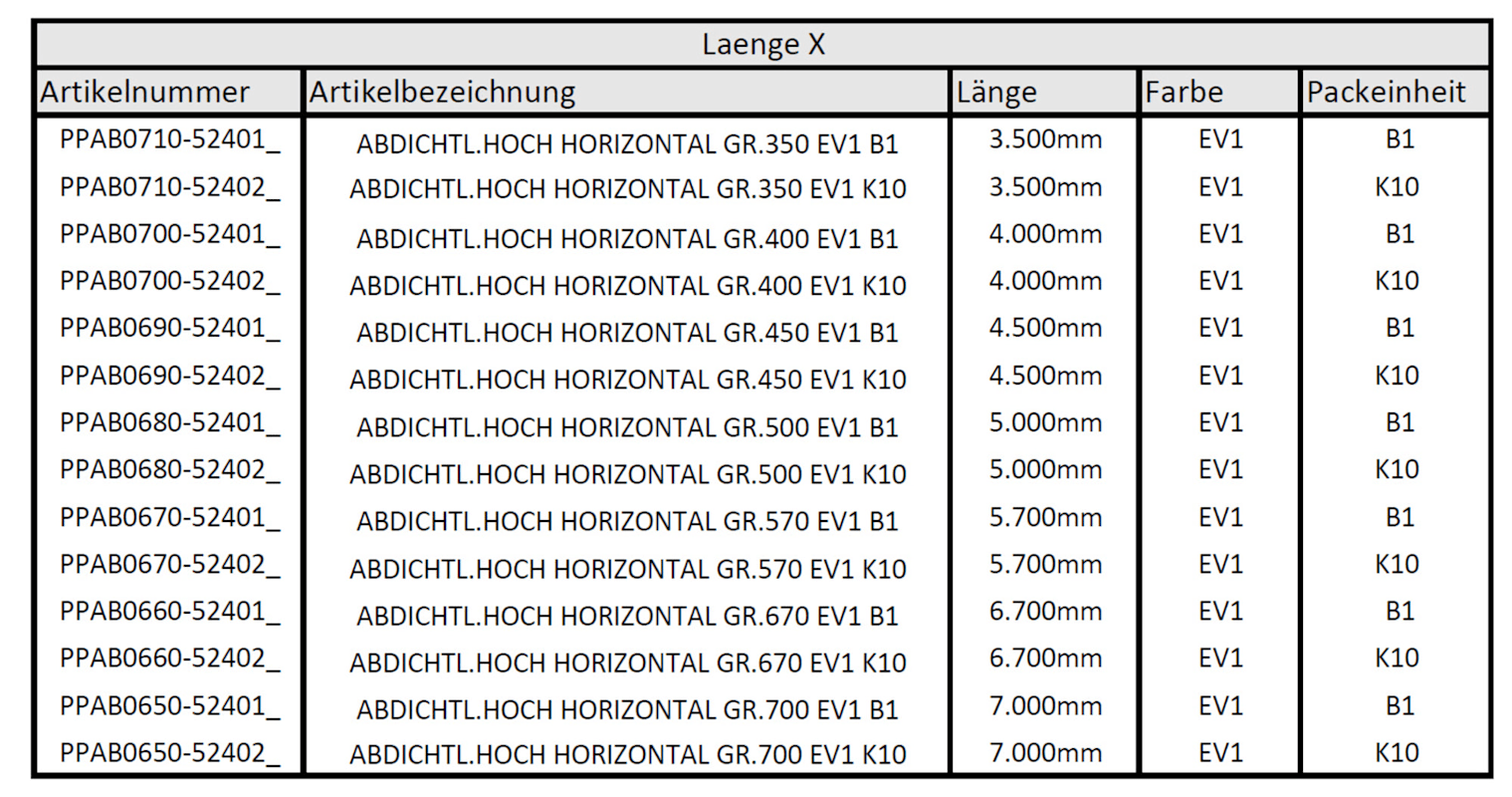 ABDICHTL.HOCH HORIZONTAL GR.700 EV1 K10 PPAB0650-524020