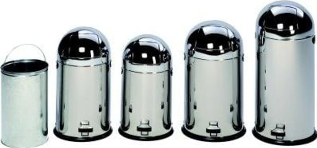 Push-Abfallsammler, mit Fußpedal • Material: Edelstahl • Inneneinsatz: Stahlblech, verzinkt • Einwurfklappe: selbstschließend • Bodenschonender Kantenschutz