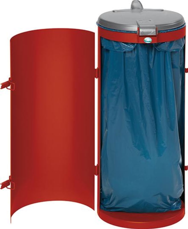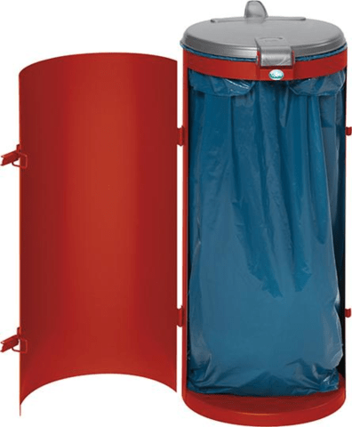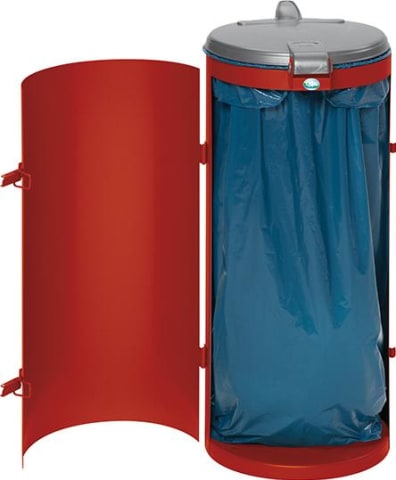 Abfallsammler-Einflügeltür, mit Kunststoffdeckel • Material: Stahlblech, verzinkt • Oberfläche: pulverbeschichtet • Kunststoffdeckel • Für Kunststoffsäcke
