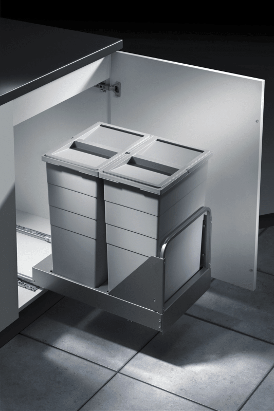 FORMAT Einbauabfallsammler Bottom Mount 3616411; Montage: Bodenmontage; Werkstoff Eimer und Deckel: Kunststoff; Ausführung: mit Vollauszug,mit Selbsteinzug,mit Dämpfung,mit Tragegriff,mit Deckel,mit F