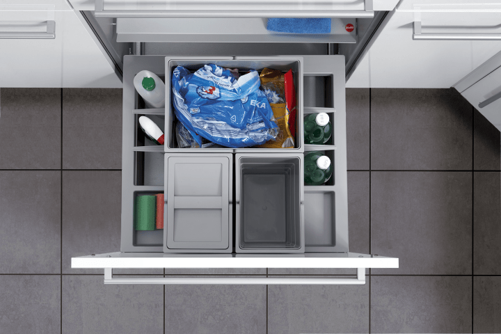 FORMAT Einbauabfallsammler Seperato-K 3620461; Montage: auf bauseitigem Schubasten; Werkstoff Eimer und Deckel: Kunststoff; Ausführung: mit Deckel,mit zwei seitliche Staufächer; Einsatzbereich: Küchen