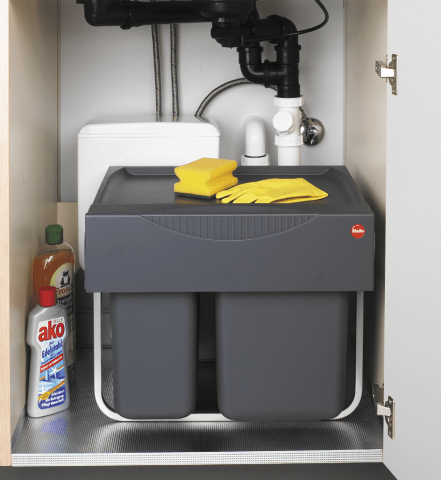 FORMAT Einbauabfallsammler Raumspar-Tandem-S 3644731; Montage: Bodenmontage; Werkstoff Eimer und Deckel: Kunststoff; Ausführung: mit Deckel,mit Ablagefläche,mit Kugelvollauszug; Einsatzbereich: Küchen