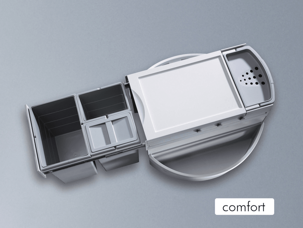 FORMAT Einbauabfallsammler Rondo Comfort 3646231; Montage: Bodenmontage; Werkstoff Eimer und Deckel: Kunststoff; Ausführung: mit Kugelvollauszug,mit Dämpfung,mit Selbsteinzug,mit Systemdeckel,mit vers