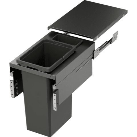 VS ENVI® Space XX Pro Abfalltrennsystem- integrierte 3D-Frontjustierung durch Excenter- integrierte Dämpfung und Selbsteinzug in beiden Führungen- zusätzliche Ablage durch ein Abdeckblech- Eimer sind spülmaschinengeeignet