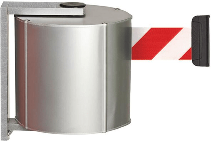 Absperrgurt, extra lang • Zur weiträumigen Absperrung und Kennzeichnung von Wegen in Lager und Betrieb • Gehäuse: Aluminium, schwarz, mit Schraubbefestigung, Gurtkassette in der Halterung drehbar • Gurt: Auszug und Viskosebremse, Gurte in 2 Längen (12 und 22 m) und 3 Farben