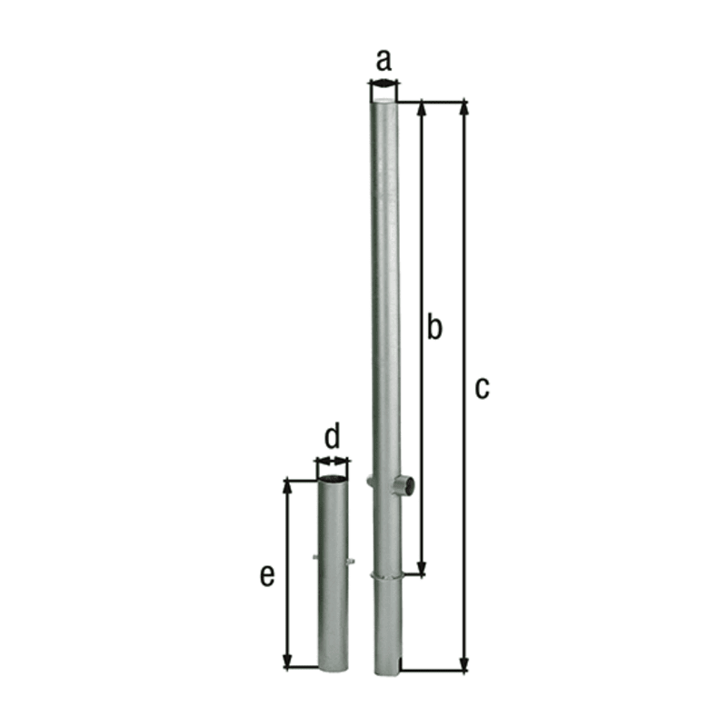 Absperrpfosten Modell PASSAU • Material: Stahl, feuerverzinkt und weiß kunststoffbeschichtet, mit 2 rot reflektierenden Ringen • Dreikantverschluss, gleichschließend mit 2 Schlüsseln und Schraubzylin