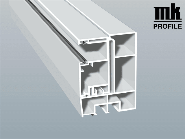 Adapterprofil 80x58 mm Lg. 6,00 m Revision außen & Maxi-Rollladenführung 57x30 mm Lg. 6,00 m mit zwei grauen WL, VE: 18 m