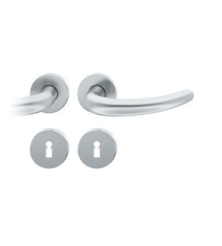 FSB Drückergarnitur 72 1160; Produkttyp: Drückergarnitur; Produkttyp (Hersteller): Drückergarnitur; Ausführung: Rosette; Befestigungsart Drückerrosette (außen): verdeckt verschraubt; Befestigungsart Drückerrosette (innen): verdeckt verschraubt; Befestigungsart Schlüsselrosette (außen): verdeckt verschraubt; Befestigungsart Schlüsselrosette (innen): verdeckt verschraubt; Befestigungstechnik: mit Stütznocken; Montageart: aufliegend; Form Drückerrosette: rund; Form Schlüsselrosette (außen): rund; Form Schlüsselrosette (innen): rund; Vierkant: 8 mm; Material: Edelstahl; Material Unterkonstruktion (Griffrosette): Kunststoff-Edelstahlverbundbau; Form Türgriff (innen): gebogen; Form Türgriff (außen): gebogen; Durchmesser Schlüsselrosette: 55 mm; Länge Türgriff (innen): 146 mm; Länge Türgriff (außen): 146 mm; Höhe Türgriff (innen): 66 mm; Höhe Türgriff (außen): 66 mm; Durchmesser Drückerrosette (außen): 55 mm; Durchmesser Drückerrosette (innen): 55 mm; Höhe Drückerrosette (außen): 7 mm; Höhe Drückerrosette (innen): 7 mm; Höhe Schlüsselrosette (außen): 7 mm; Höhe Schlüsselrosette (innen): 7 mm; Lagerung: mit Rückholfeder,Ausgleichslager® 3,festdrehbar; Einsatzbereich: Objekttür; Türart: Vollblatt; Türwerkstoff: Holz,Stahl; Lochung: Buntbart gelocht; DIN-Richtung: DIN Links; Farbe: grau; Farbton: edelstahl; Oberfläche: fein matt; Material Unterkonstruktion (Schlüsselrosette): Kunststoff-Edelstahlverbundbau; Betätigungswinkel max.: 35 °; Türstärke min.: 39 mm; Türstärke max.: 48 mm; Norm: DIN EN 1906; EN 1906 - Gebrauchskategorie: Klasse 4; EN 1906 - Dauerhaftigkeit: Klasse 7; EN 1906 - Türmasse: -; EN 1906 - Feuerbeständigkeit: Klasse 0; EN 1906 - Sicherheit: Klasse 1; EN 1906 - Korrosionsbeständigkeit: Klasse 5; EN 1906 - Einbruchschutz: Klasse 0; EN 1906 - Ausführungsart: Typ B; Klassifizierungsschlüssel EN 1906: 47-0150B