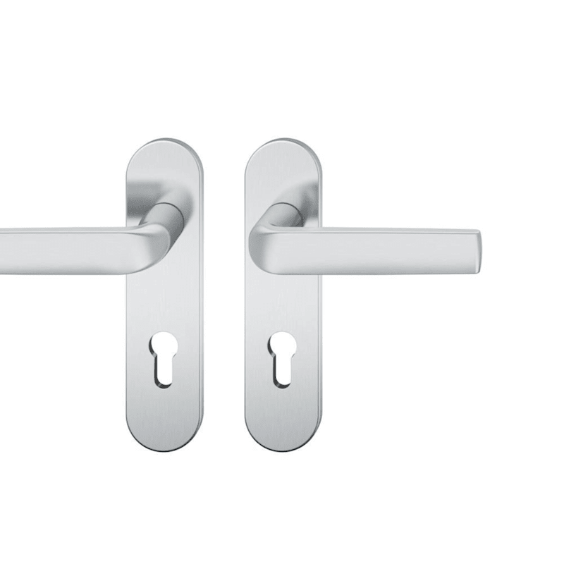 FSB Drückergarnitur 72 1267; Produkttyp: Drückergarnitur; Produkttyp (Hersteller): Drückergarnitur; Ausführung: Kurzschild; Befestigungsart: verdeckt verschraubt; Befestigungstechnik: mit Stütznocken; Form: oval; Vierkant: 8 mm; Material: Edelstahl; Material Unterkonstruktion: Kunststoff; Form Türgriff (innen): Design; Form Türgriff (außen): Design; Breite Türgriff (innen): 23 mm; Breite Türgriff (außen): 23 mm; Länge Türgriff (innen): 135 mm; Länge Türgriff (außen): 135 mm; Höhe Türgriff (innen): 53 mm; Höhe Türgriff (außen): 53 mm; Schildbreite außen: 45 mm; Schildbreite innen: 45 mm; Schildlänge außen: 185 mm; Schildlänge innen: 185 mm; Schildstärke außen: 7 mm; Schildstärke innen: 7 mm; Lagerung: mit Rückholfeder,Ausgleichslager® 3,festdrehbar; Einsatzbereich: Objekttür; Türart: Vollblatt; Türwerkstoff: Stahl,Holz; Norm: DIN EN 1906; Lochung: Profilzylinder gelocht; Entfernung: 72 mm; DIN-Richtung: DIN Links; Farbe: grau; Farbton: edelstahl; Oberfläche: fein matt; Design Türdrücker: Hartmut Weise; Ausführung Vierkant: Stabilstift; Betätigungswinkel max.: 35 °; Türstärke min.: 39 mm; Türstärke max.: 48 mm