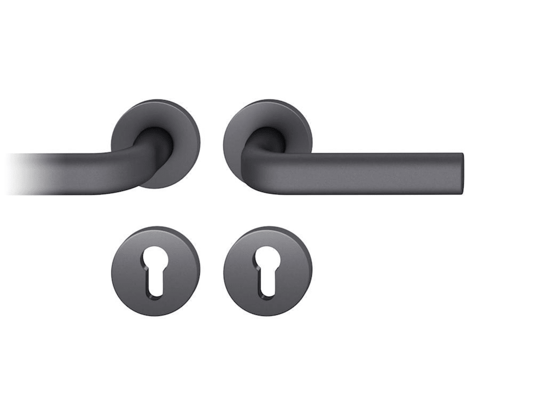 FSB Drückergarnitur 72 1242; Produkttyp: Drückergarnitur; Produkttyp (Hersteller): Drückergarnitur; Ausführung: Rosette; Befestigungsart Drückerrosette (außen): verdeckt verschraubt; Befestigungsart Drückerrosette (innen): verdeckt verschraubt; Befestigungsart Schlüsselrosette (außen): verdeckt verschraubt; Befestigungsart Schlüsselrosette (innen): verdeckt verschraubt; Befestigungstechnik: mit Stütznocken; Montageart: aufliegend; Form Drückerrosette: rund; Form Schlüsselrosette (außen): rund; Form Schlüsselrosette (innen): rund; Vierkant: 8 mm; Material: Aluminium; Material Unterkonstruktion (Griffrosette): Kunststoff-Edelstahlverbundbau; Form Türgriff (innen): gebogen; Form Türgriff (außen): gebogen; Breite Türgriff (innen): 24 mm; Durchmesser Schlüsselrosette: 55 mm; Breite Türgriff (außen): 24 mm; Länge Türgriff (innen): 140 mm; Länge Türgriff (außen): 140 mm; Höhe Türgriff (innen): 66 mm; Höhe Türgriff (außen): 66 mm; Durchmesser Drückerrosette (außen): 55 mm; Durchmesser Drückerrosette (innen): 55 mm; Höhe Drückerrosette (außen): 7 mm; Höhe Drückerrosette (innen): 7 mm; Höhe Schlüsselrosette (außen): 7 mm; Höhe Schlüsselrosette (innen): 7 mm; Lagerung: festdrehbar,Ausgleichslager® 3,mit Rückholfeder; Einsatzbereich: Objekttür; Türart: Vollblatt; Türwerkstoff: Holz,Stahl; Lochung: Profilzylinder gelocht; DIN-Richtung: DIN Rechts; Farbe: schwarz; Oberfläche: eloxiert,gestrahlt; Material Unterkonstruktion (Schlüsselrosette): Kunststoff-Edelstahlverbundbau; Betätigungswinkel max.: 35 °; Design Türdrücker: John Pawson; Türstärke min.: 39 mm; Türstärke max.: 48 mm; Norm: DIN EN 1906; EN 1906 - Gebrauchskategorie: Klasse 4; EN 1906 - Dauerhaftigkeit: Klasse 7; EN 1906 - Türmasse: -; EN 1906 - Feuerbeständigkeit: Klasse 0; EN 1906 - Sicherheit: Klasse 1; EN 1906 - Korrosionsbeständigkeit: Klasse 5; EN 1906 - Einbruchschutz: Klasse 0; EN 1906 - Ausführungsart: Typ B; Klassifizierungsschlüssel EN 1906: 47-0150B