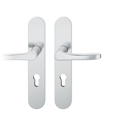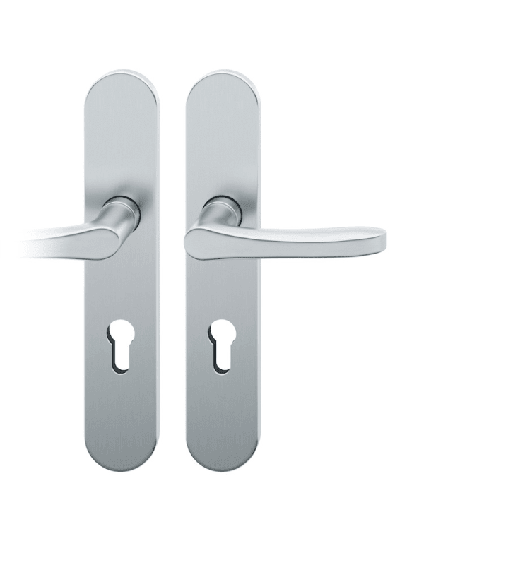 FSB, Objekttür-Drückergarnitur, Abdeckung: Langschild, Lochung: Profilzylinder gelocht, Entfernung: 72mm, Vierkant: 8mm, Material: Edelstahl, Farbton: edelstahl, Oberfläche: fein matt, Modellnummer: 72 1106, DIN-Richtung: DIN Links, Lagerung: Ausgleichslager® 3, festdrehbar, Rückholfeder, Befestigungstechnik: mit Stütznocken, Befestigungsart: verdeckt verschraubt, Befestigungssystem: Stiftverbindung, Länge: 245mm, Breite: 45mm, Schildstärke: 7mm, Anschlagrichtung: Drücker links zeigend, Drückerbefestigung: Stabilstift, Form: oval, Drückerform: L-Form, gebogen, Design: Christoph Mäckler,Drückerlänge : 119mm,Drückerhöhe : 60mm, Türstärke min.: 39mm, Türstärke max.: 48mm, Türart: Abschlusstüren, Türwerkstoff: Holz, Stahl,Betätigungswinkel max. : 35°, Benutzerklasse: Klasse 4, Norm: DIN EN 1906