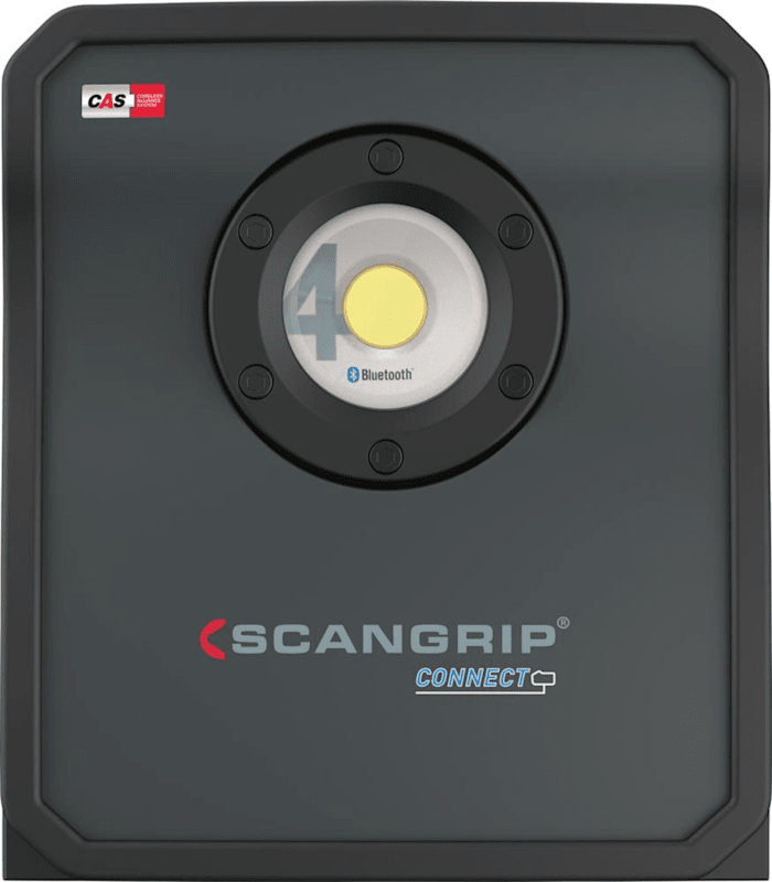 Hybrid-LED-Arbeitsleuchte NOVA 4 CONNEC • Fest verbaute COB-LE • Leuchtstärke in 5 Stufen (100/75/50/25/10 %) einstellba • Aluminiumgehäuse mit Gummimante • Schwenkbarer Standfuß mit Stativgewindeaufnahm • Mit Powerbank-Funktion, zum Laden von Smartphones, Tablets und anderen Akkugeräte • Bluetooth®-Beleuchtungssteuerun • Schutzart IP65, Einsatz im Innen- und Außenbereic • Betrieb direkt über 18-V-Akkus des CAS-Systems oder Scangrip-CAS-Netzteil sowie 18/20-V-Akkus führender Elektrowerkzeugmarken unter Verwendung eines Schnittstellen-Adapters der Connector-Seri • Integrierter Reserveakku verhindert zuverlässig plötzlichen Lichtausfal Lieferung: Ohne Akku und ohne Netzanschluss.