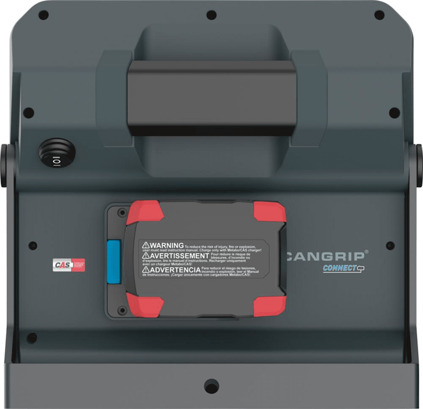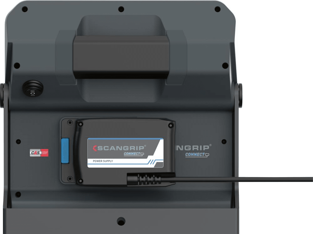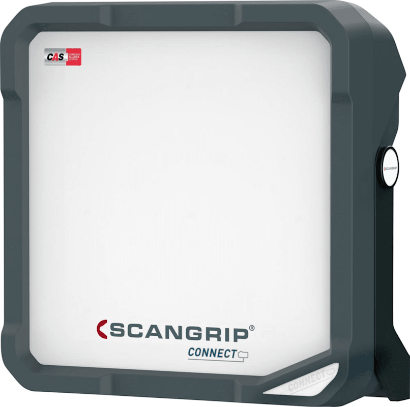 Hybrid-LED-Arbeitsleuchte VEGA 4 CONNEC • 105 fest verbaute SMD-LE • Leuchtstärke in 2 Stufen (100/50 %) einstellba • Gummiertes Kunststoffgehäus • Schwenkbarer Standfuß mit Stativgewindeaufnahm • Schutzart IP54, Einsatz im Innen- und Außenbereic • Betrieb direkt über 18-V-Akkus des CAS-Systems oder Scangrip-CAS-Netzteil sowie 18/20-V-Akkus führender Elektrowerkzeugmarken unter Verwendung eines Schnittstellen-Adapters der Connector-Seri Lieferung: Ohne Akku und ohne Netzanschluss.