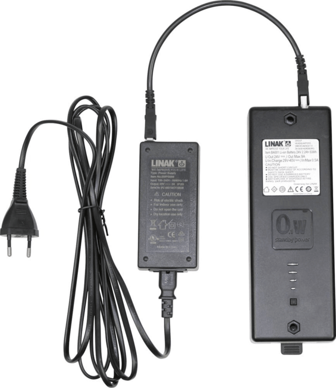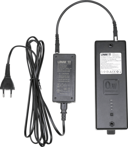 Akku-Box für Serie adlatus • Für die Verwendung der Arbeitsplätze ohne direkten Stromanschluss (z. B. bei mobiler Verwendung mit Rollensatz) • Hochleistungs-Lithium-Ionen-Akku mit Ladeanzeige und Ala
