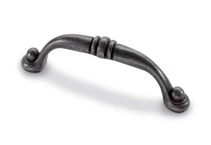 Griff Alberta, Bohrabstand 96 mm, L 110 mm, B 14 mm, H 28 mm, Zinn Optik antik