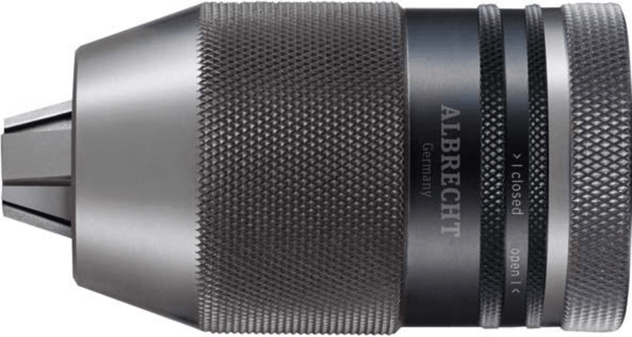 Hochleistungs-Schnellspann-Bohrfutter NCBF• Schlüsselloses Dreibacken-Bohrfutter • Selbstspannend • Rechts- und Linkslauf • Mit Spannsicherung, verhindert das Öffnen bei Linkslauf bzw. abruptem Spi