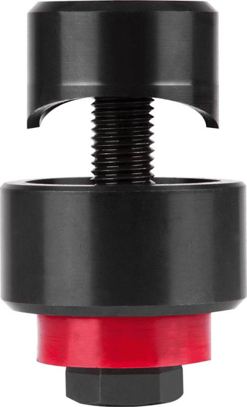 Schraublochstanze (Blechlocher)Mit drei Schneidspitzen, Stempel, Matrize und Zugschraube. Zum schnellen, sauberen und gratfreien Lochen von Kunststoffen und Stahlblechen. Geeignet für Stahlbleche bis 2,0 mm Stärke bei Zugschrauben-Ø 9,5 mm bzw. 3,0 mm bei Zugschrauben-Ø 19,0 mm. Bei Zugschrauben-Ø 9,5 mm mit einem 11,0-mm-Bohrer, bei Zugschrauben-Ø 19,0 mm mit einem 20,5-mm-Bohrer vorbohren.