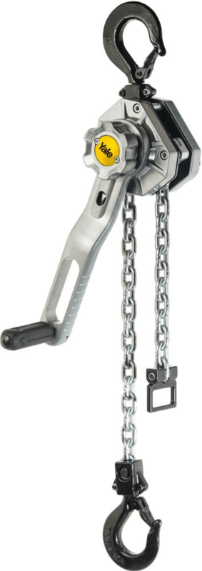 Handflaschenzug Modell YaleErgo® 360 • Gehäuse: leichtes, hochfestes Aluminium, Oberfläche pulverbeschichtet und wetterfest • Gegossenes Kettenendstück: ermöglicht einfaches und sicheres Greifen der