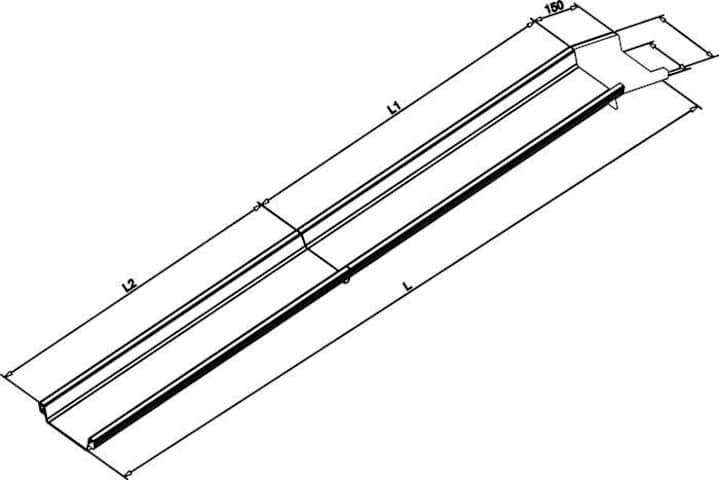 Aluminium-Verladeschiene, faltbar, Strang-Pressprofil• Aluminium: Strang-Pressprofil • Fahrinnenbreite: 155 mm • Außenbreite: 230 mm Hinweis: Faltbare Verladeschiene ist platzsparend verstau- und