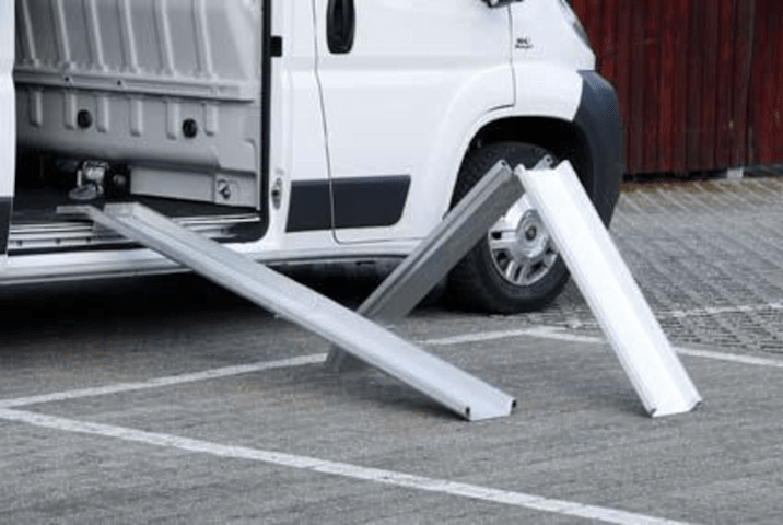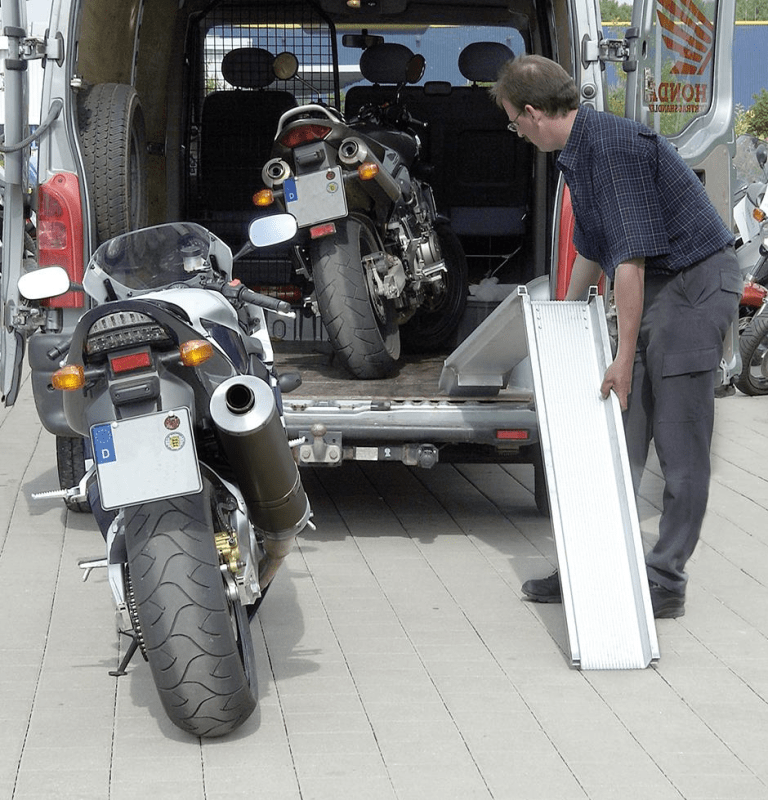 Hinweis: Faltbare Verladeschiene ist platzsparend verstau- und transportierbar.