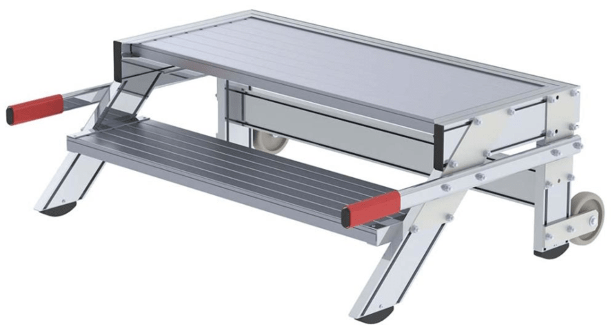 Meesenburg Artikelbezeichnung: ALU-ARBEITSPODEST FAHRBAR 2 ALU-STUFEN B 1000MM PODESTH. 0,39M ARBEITS.-2,4 50019