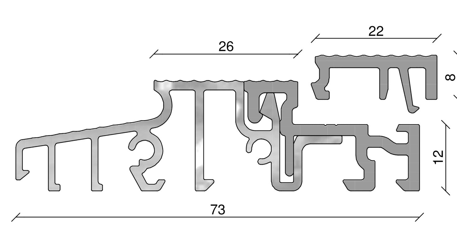 Aluminium-Aufsatzprofile für Türschwellen für außenöffnende Türen, geriffelt, mit Schutzfolie, EV1/PVC grau