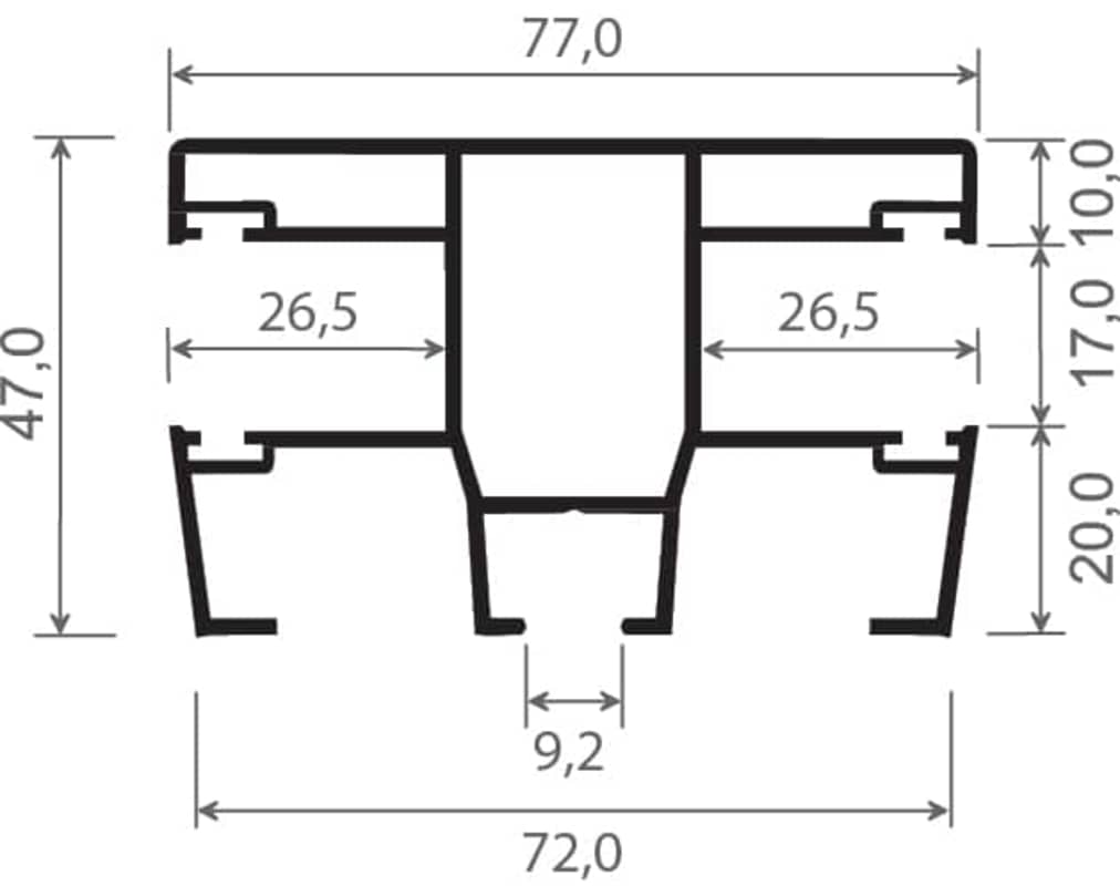 ALU Doppel Rollladenführung 77x47 mm Lg. 6,50 m Weiß ähnlich RAL 9016, VE: 13 m