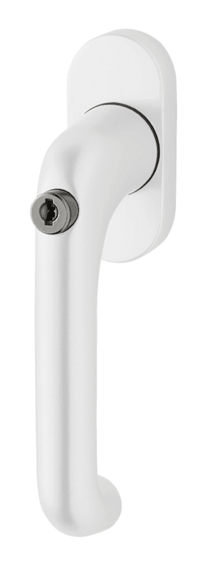 Fenstergriff Janus 1013/3035, abschließbar, oval,Vierkant 7/35, TBT, gleichschließend, 1400, verkehrsweiß beschichtet