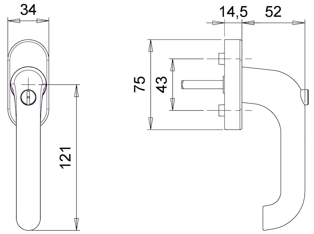 Fenstergriff Janus 1013/2035, abschließbar, oval,Vierkant 7/35, gleichschließend, 1400, naturfarben eloxiert