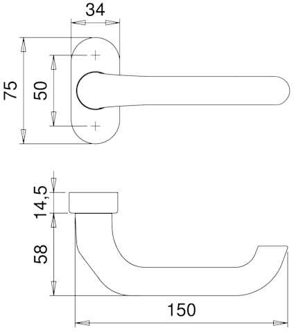 FH Halbgarnitur Ares 1300/2133, ohne Schlüsselrosette, oval, Vierkant 9mm mit Stütznocken, verkehrsweiß, RAL 9016 beschichtet