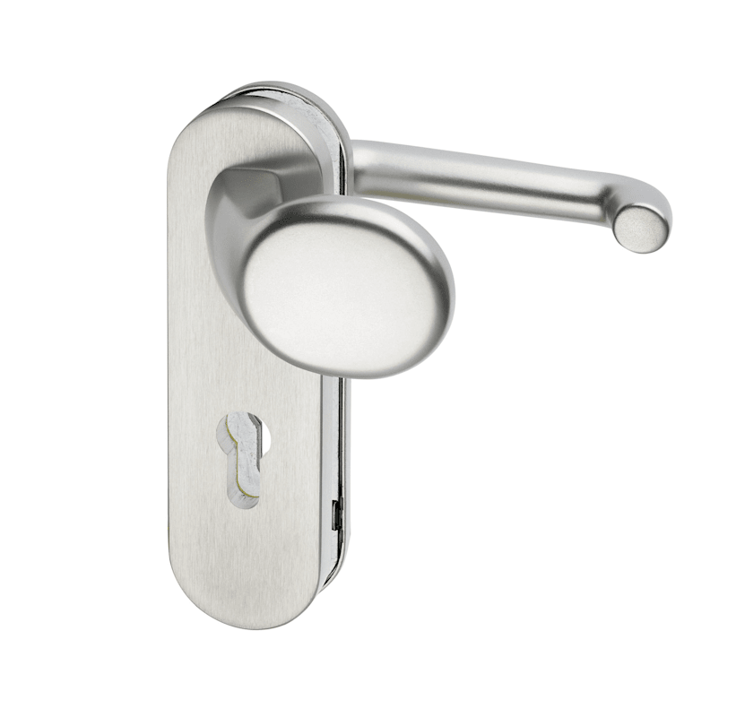 FH Vollblatt Sicherheits-Wechselgarnitur Logo/k 5713/0272,Kurzschild,ES 1,ohne Zylinderabdeckung 72/9,DIN Links-Rechts,naturfarben eloxiert,Türstärke39-48,gekröpft/U-Form fest