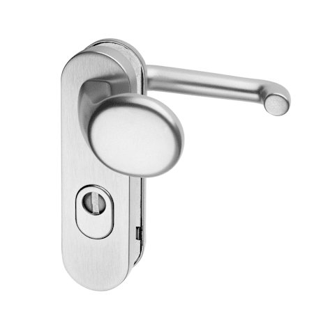FH Vollblatt Sicherheits-Wechselgarnitur Logo/k 5715/0272,Kurzschild,ES 1,mit Zylinderabdeckung 72/9,DIN Links-Rechts,naturfarben eloxiert,Türstärke39-48,gekröpft/U-Form fest