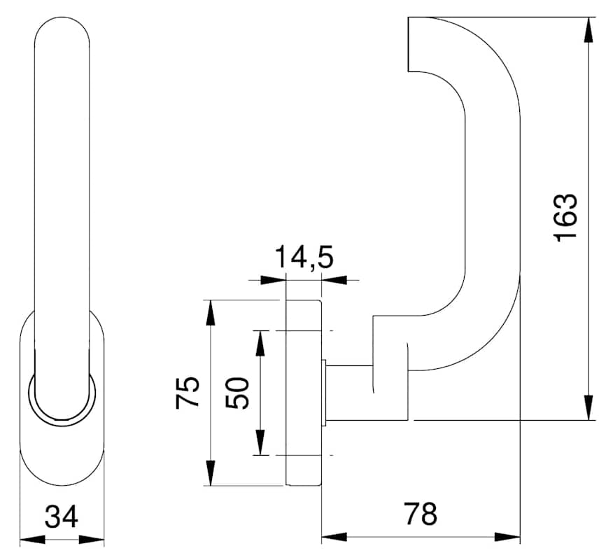 FH Standflügelgarnitur Ares 1430, ohne Schlüsselrosette, oval, Vierkant 9mm ohne Stütznocken, naturfarben eloxiert