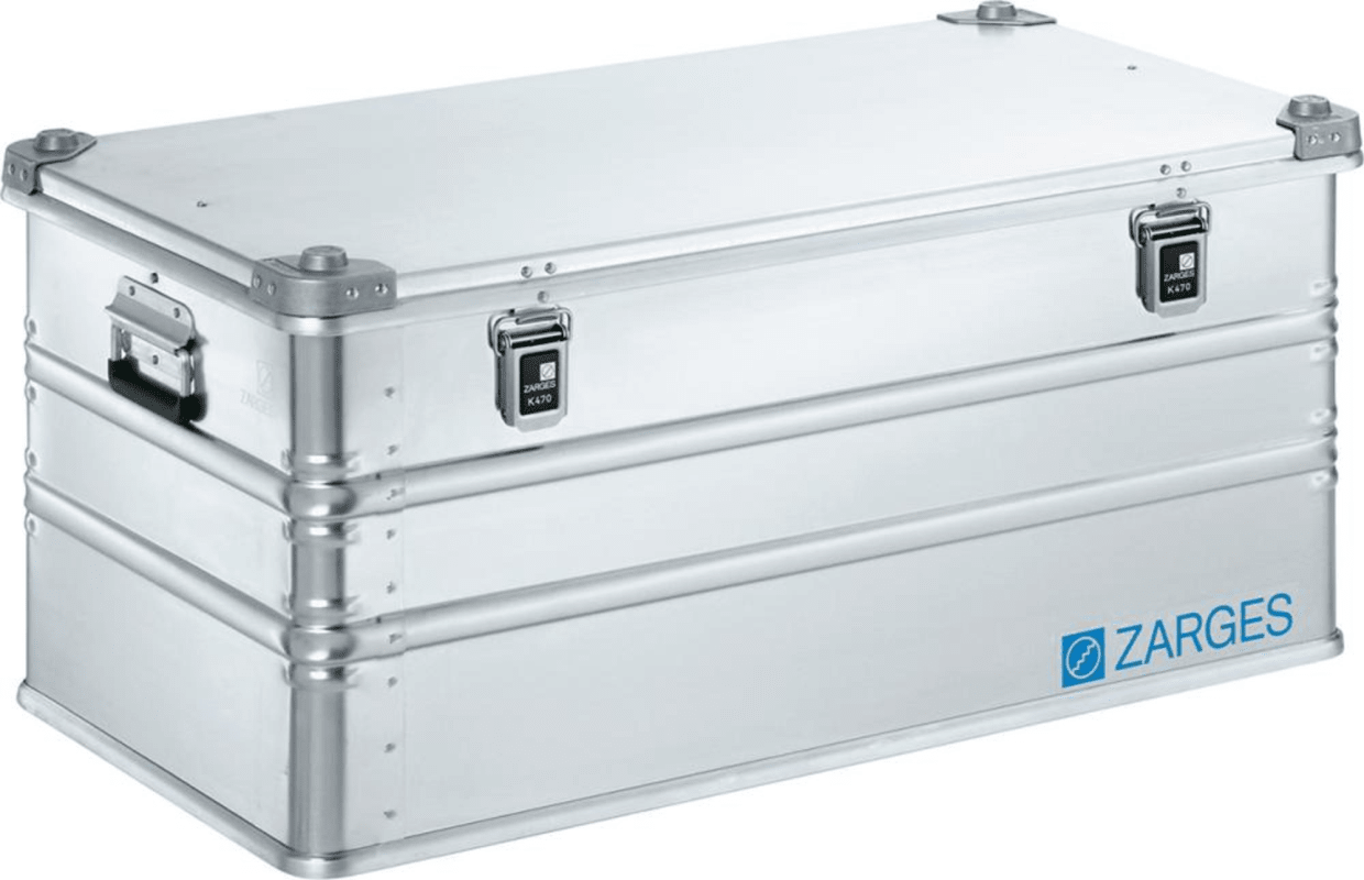 ZARGES K 470 Universalkiste: Die Baureihe K 470 bietet mit 25 Größen eine einzigartige Auswahl an Standardgrößen. Das Fassungsvermögen reicht von 13 l bis 829 l. Individuelle Sondergrößen möglich. -Deckel mit Edelstahlscharnierband, zwei Gurtbändern und umlaufend eingeschäumter Dichtung im Deckel. -Sichere Stapelbarkeit durch Stapelecken aus Aluminiumguss. -Hohe Stabilität durch 3 vollverschweißte Aluprofilrahmen. -UN-Zulassung für den Transport gefährlicher Güter gegen Mehrpreis möglich. -ZARGES Comfort-Handgriffe für ergonomische Handhabung und Belastungen bis 50 kg. -Je nach Höhe umlaufende Sicken und Ecksicken für zusätzliche Formstabilität. -Klappverschlüsse: Sicherung durch Steckschloss, Plomben, Aufspringsicherungsfeder oder Vorhängeschloss (max. Bügelstärke 6 mm) möglich. -25 Standardgrößen, kundenspezifische Ausführungen auf Anfrage. -Ergonomische und langlebige Comfort-Verschlüsse für mindestens 20.000 Betätigungszyklen. -Extra starkes 1,5-mm-Blech bei allen K 470 ab 750 x 550 mm Grundmaß.