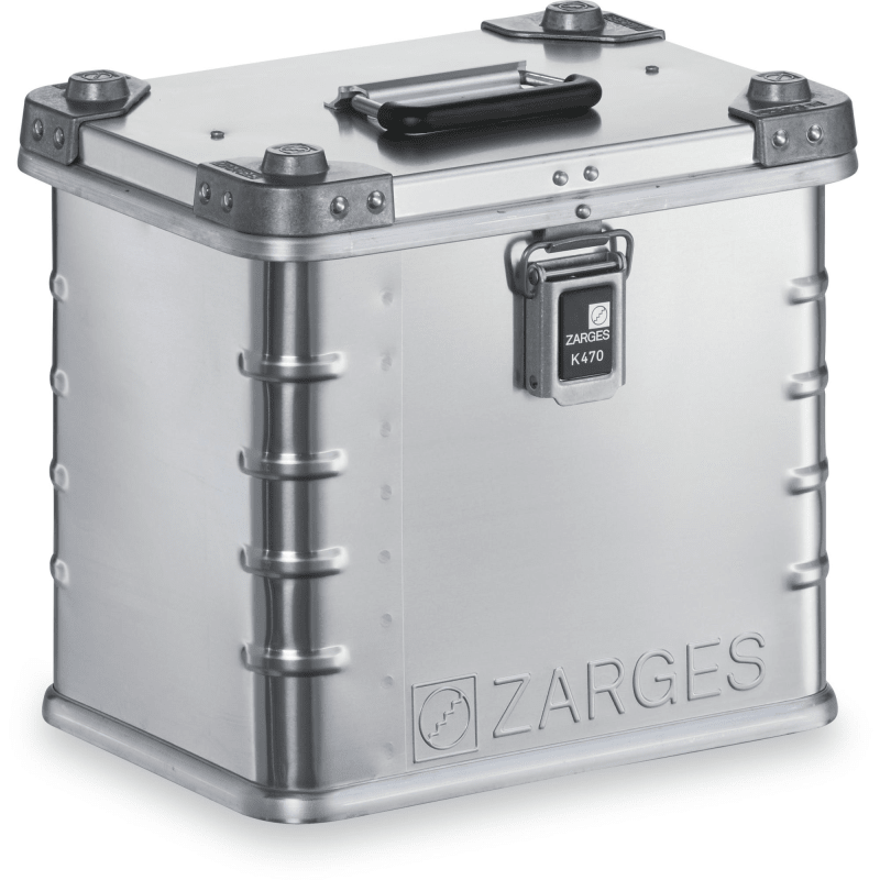 Alu-Kiste K470; 27l, IM: 350x250x310mm, umlfd. Dichtung, Edelstahlscharnierband