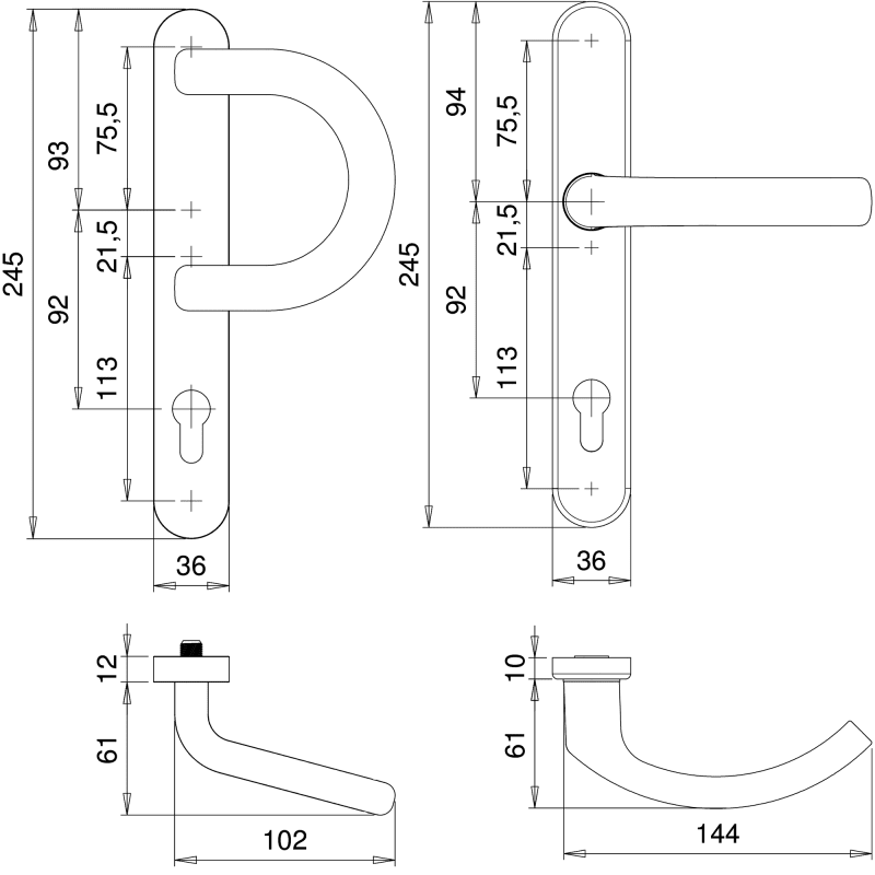 Dieckmann Alu-Rahmen-Wechsel-Garnitur mit Bügelgriff, SKG, Serie Kronos, 8mm VKT, 92 PZ, 2201/B1/535 F09