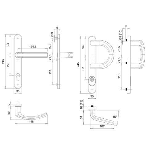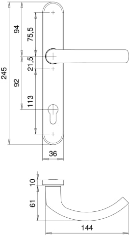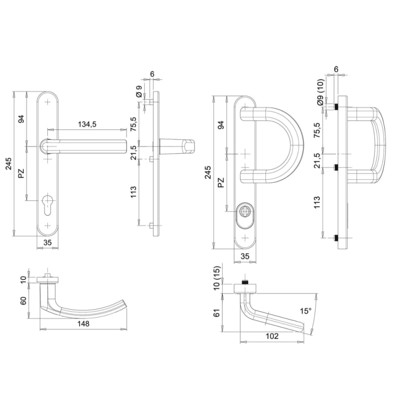 Dieckmann Alu-Rahmen-Wechsel-Garnitur mit Bügelgriff, SKG, Serie Kronos, 8mm VKT, 92 ZA, 2201/B1/545 F09