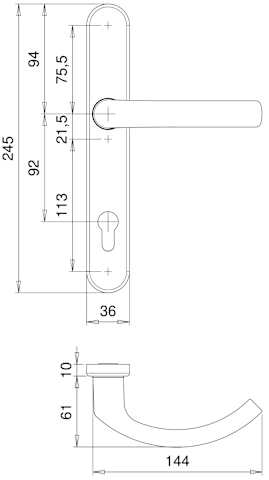 Dieckmann Alu-Rahmen-Drücker-Garnitur, SKG, Serie Kronos, 8mm VKT, 92 ZA,, 2201/545 F14