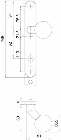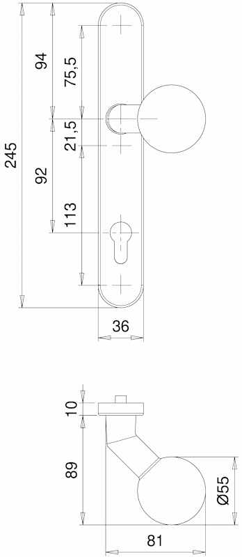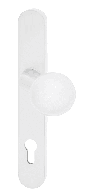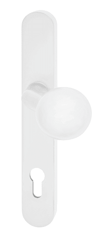 Knopfschild Kronos 0000/4135, außen, Langschild oval, Profilzylinder gelocht, Entfernung 92mm, DIN Links-Rechts, mit Stütznocken, verkehrsweiß beschichtet