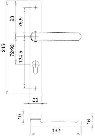 Drückergarnitur PAN 1320/9000, Langschild eckig, Profilzylinder gelocht, Entfernung 72mm, Vierkant 8, DIN Links-Rechts, Türstärke 68 - 75mm, ohne Stütznocken, naturfarben eloxiert, festdrehbar