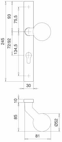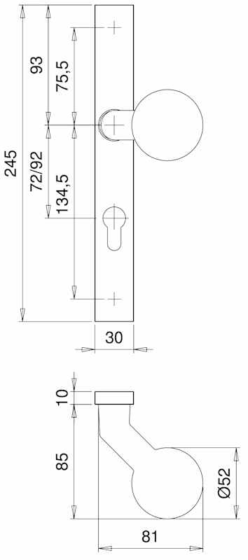 Wechselgarnitur PAN 1312/4010, Langschild eckig, Profilzylinder gelocht, Entfernung 72mm, Vierkant 8, DIN Links-Rechts, Türstärke 68 - 75mm, ohne Stütznocken, naturfarben eloxiert, festdrehbar