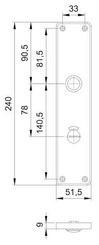 Langschildpaar 1220, außen/innen, eckig, ohne Stütznocken, WC Schauscheibe/Schlitzkopf, Entfernung 78mm, Türstärke min. Türstärke 40- Türstärke max. 45mm, silber, neusilberfarben, eloxiert